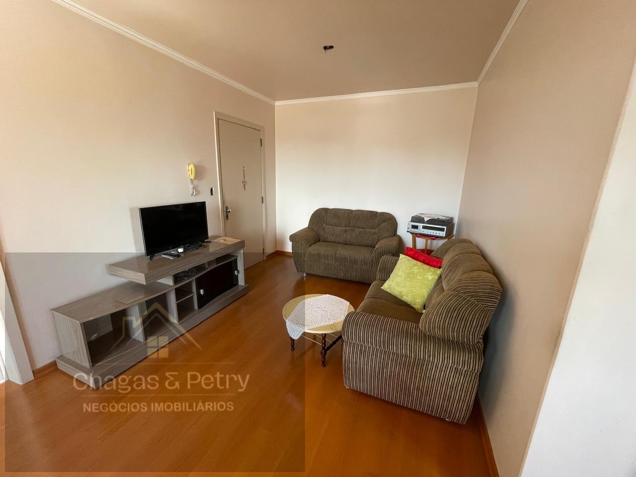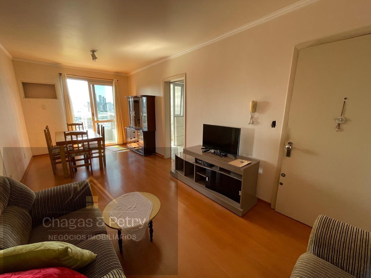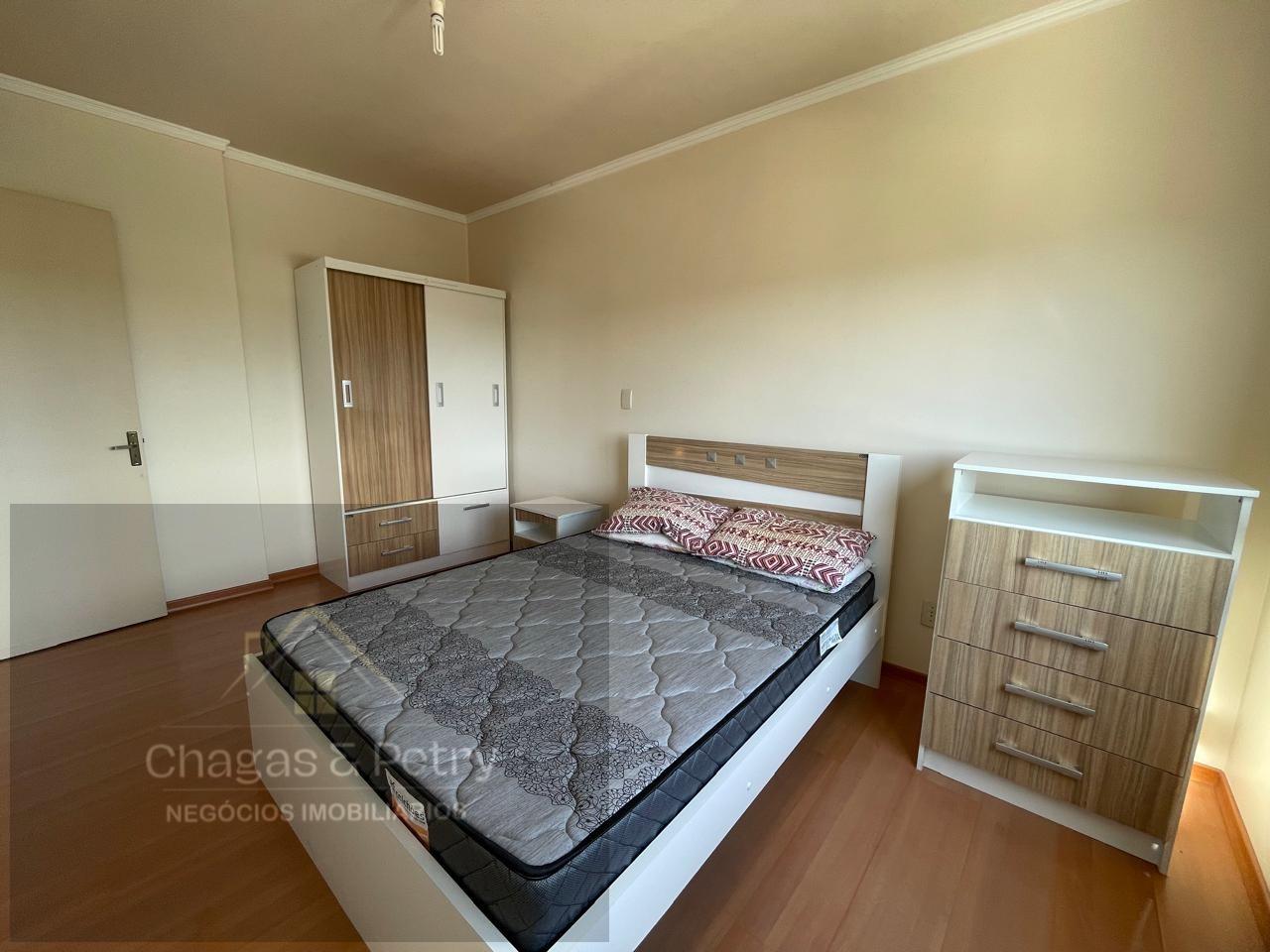 *A área privativa do apartamento é de 63,78 m² e a área total é de 89,71 m². O imóvel conta com 1 banheiro social e é mobiliado, permanecendo no imóvel 2 roupeiros e uma cama de casal. A sala de estar e jantar é integrada e possui sacada fechada em vidrto, além de cozinha e lavanderia. O piso é em cerâmica e laminado. O prédio oferece salão de festas, portaria 24 horas e possui 2 elevadores para maior comodidade dos moradores.