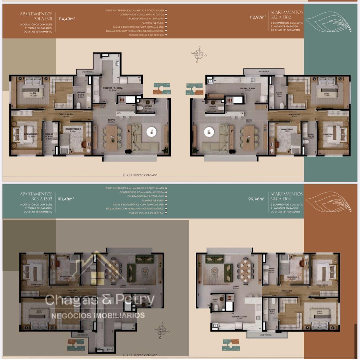- 4 Apartamentos de 3 dormitórios com suíte e terraço;