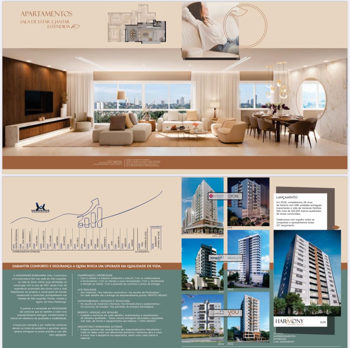 Os apartamentos são compostos por: sala de estar/jantar, cozinha/área de serviço,