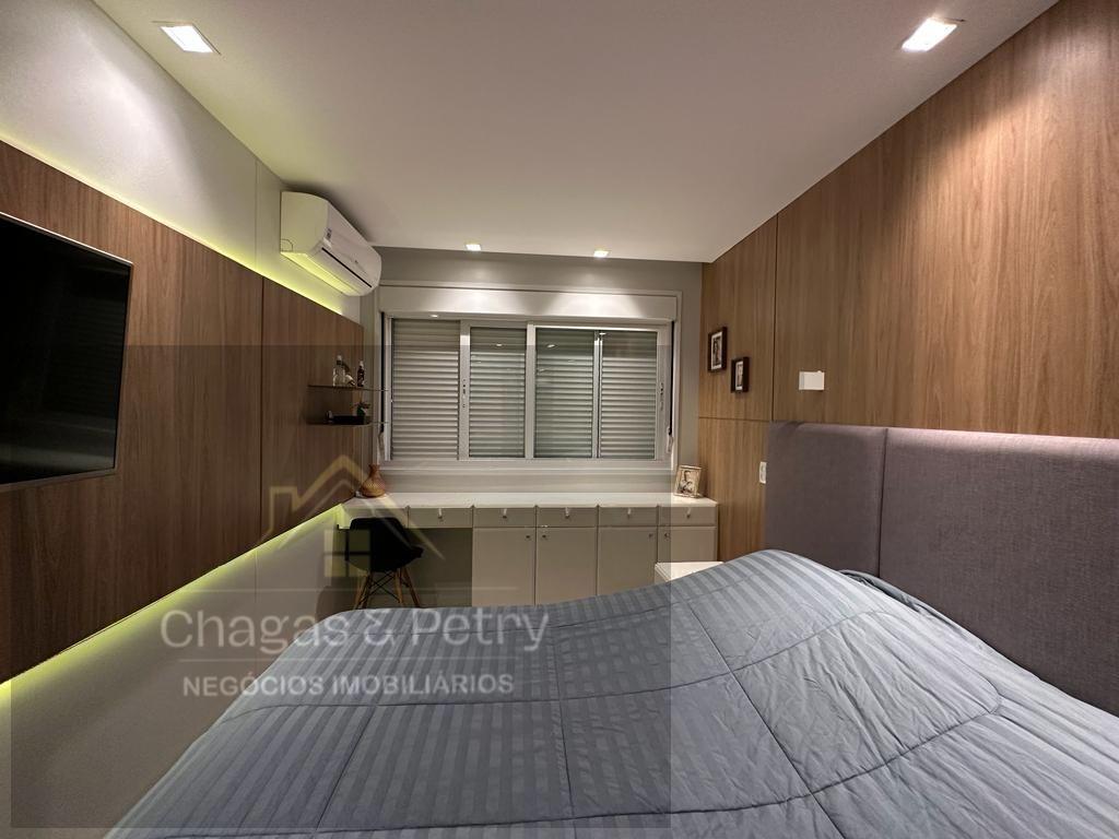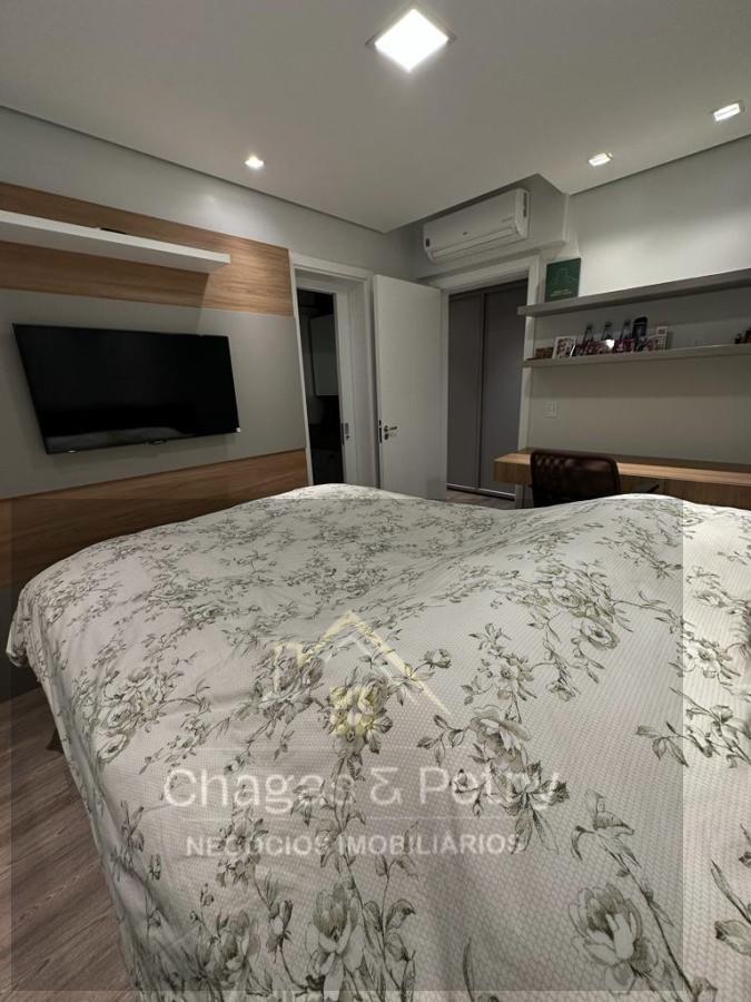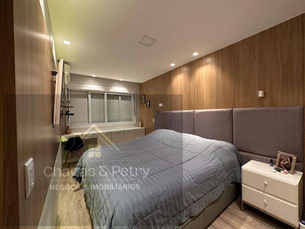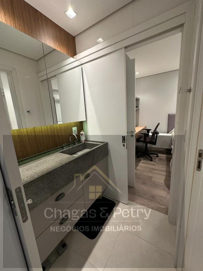 O apartamento fica semimobiliado, possui 118,22m² privativos, três dormitórios, sendo um suíte e os outros dois com suíte americana; O living integrado traz praticidade, conforto e beleza aos ambientes, sem contar a vista que é de tirar o fôlego! Por possuir a sala em vidro, possui ainda mais iluminação natural do que as demais plantas do residencial.