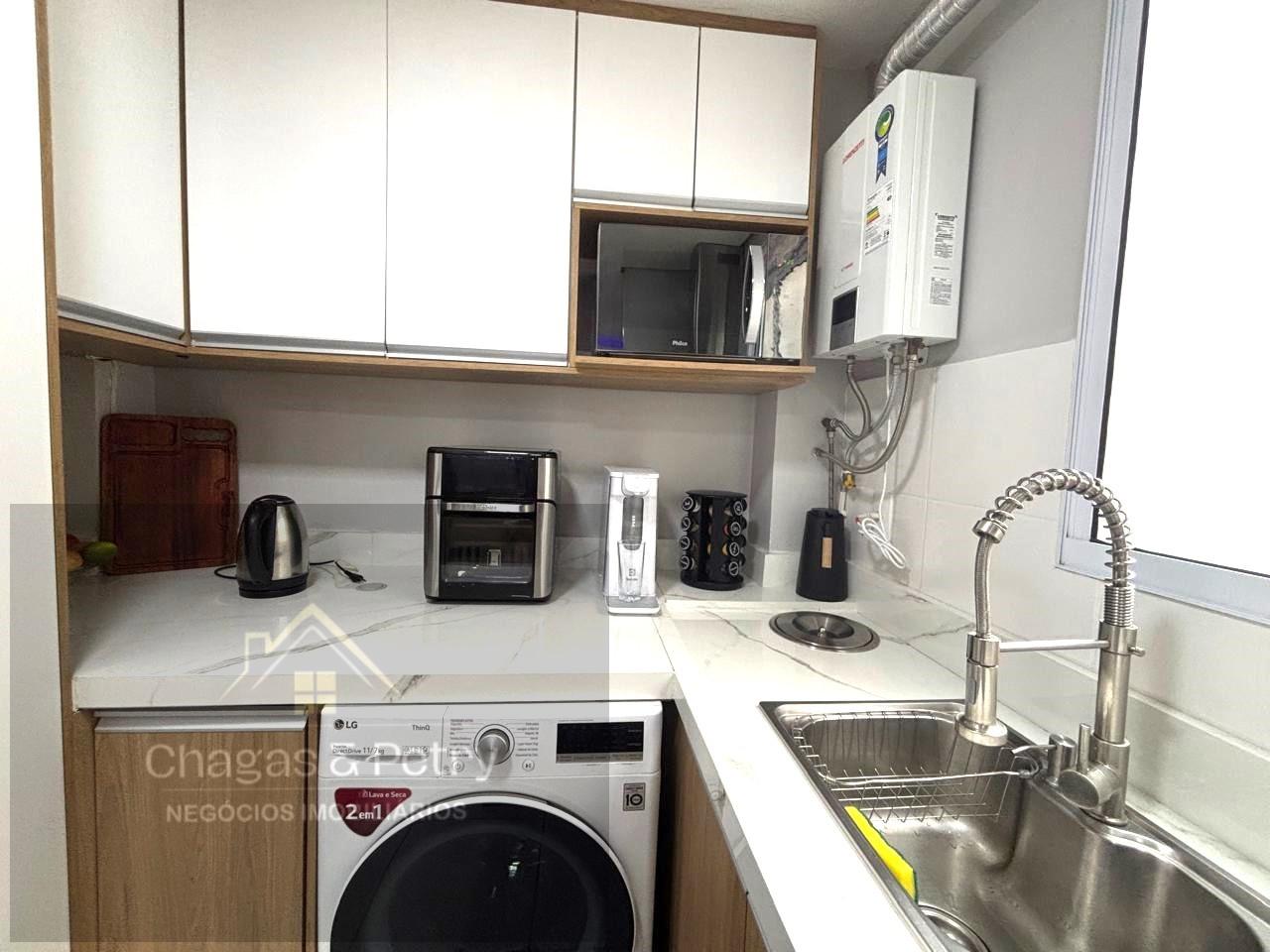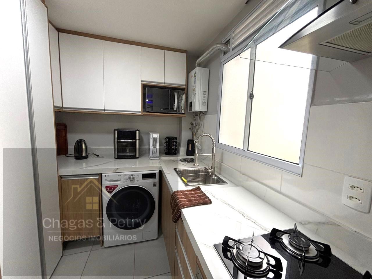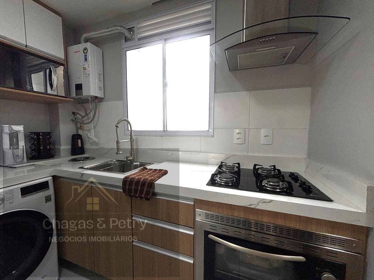 • Móveis sob medida: armários no banheiro e cozinha, fogão cooktop e coifa.